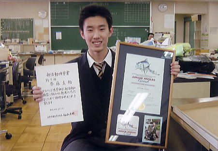 の2点からです。過去にも大澤功実、豊住晃之、加藤直樹(いずれも2002年JGFAライトタックルトーナメントのメンバー)も受賞しており、学校というものの中でも「釣り}がスポーツとして認められ、評価されているのだということをお知らせしたいと思い、手紙を出させていただきました。