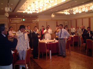| 懇親会の開催はディフェンディングチャンピオン「セラヴィ」の津田氏による乾杯でスタート! |