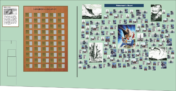 | このあたりは「歴代チャンピオンボード」「フィッシャーマンズボード」を展示します。 |