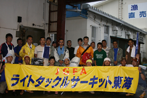 6月22日(日)2008年度ライトタックルサーキット東海の第2戦が無事終了しましたので報告いたします。今大会は伊豆半島から南下すること約4時間の銭洲で初の開催となりました。早朝3:00、2ハイのとび島丸に24名が乗り込み西伊豆土肥港を後にしました。現場に着いてみると雨はパラつくものの想像していたより凪も良く、7:00のスタートフィッシングに向けIGFAルールに沿って各自タックルの準備をします。カンパチ、ヒラマサなどの青物1尾の重量で競い合うこの大会。参加者全員が10kgオーバーの青物を狙ってジグを投入!島周りの浅瀬に向けプラグをキャストする人もいます。結果的には大型こそ出なかったものの数人の船酔い者以外は、魚と対面することができ、雨でびしょ濡れになりながらも楽しい時間が過ごせました。未明の集合から夕刻の表彰式までフルサポートしていただいた西伊豆とび島丸スタッフと雨の中がんばっていただいたすべての参加者に感謝いたします。ありがとうございました。