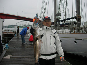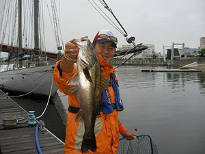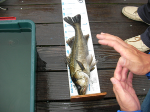 | 7.釣ったスズキは長さ(叉長)を測ってリリースしました。 |