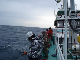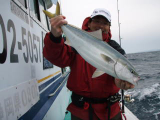 当日は西風が強く沖のポイントへは行けませんでしたが、開始早々ワラサが揚がった。カンパチが揚がったと無線が入り順調な滑り出しとなりました。しかし釣れている場所が広範囲ではなく、違うポイントへ入った船はぜんぜん当らないとの情報も入ってきたりと難しい状況の一日となりました。しかし自然相手の釣り、渋い状況の中で経験とテクニックを酷使して一本を狙う難しさと楽しさを味わって頂けたのではないでしょうか。