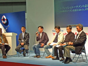 | 中日本ブロックからは「アイラッシュ」の池谷さんにお越しいただき、遠州灘、御前崎、蒲郡、鳥羽、志摩など、ブロック内で開催されるメジャートーナメントの魅力を語っていただきました。 |