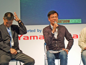 | まず、自己紹介から・・・ということで、「ボート名はGEKO。船は自宅裏の川に許可を取って係留しています」と、丸山さん。周りからは「いいなあ〜」の声。 |