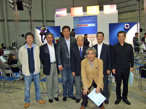 | ステージに登場したBOLの精鋭。右から北関東・吉岡昌彦さん(サンルーカス)、西日本・柳 孝治さん(BUZZ)、中日本・池谷公孝さん(アイラッシュ)、東日本・丸山宏幸さん(GEKO)、そして全国幹事長・東日本の渡邉清一郎さん(マーリンバスター)と、リード役の西日本・長鋪毅一郎さん(トゥルーブルー)の皆さん。 |