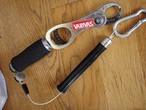 ★魚を釣り上げた際、アスファルト直置きを極力避ける為には、頑丈な尻手コイルでつないだフィッシュグリップを使用すると魚ごと水中に投げてストリンガーの代用に出来るので便利ですね。≪写真二枚目≫