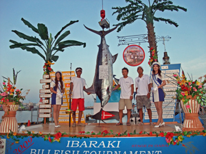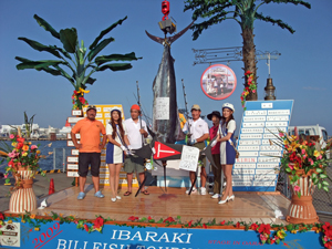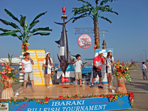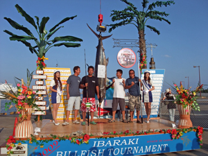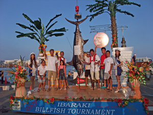 | 「海人」の大野祐馬君13才が釣ったクロカジキ163.5kg。ファイト時間はなんと4時間7分!結果は4位でも優勝に匹敵するファイトでした!いい夏休みだったね! |