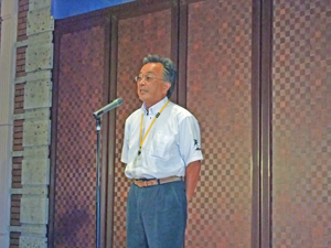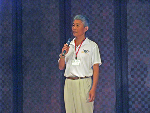 | 表彰式での金成実行委員長。二日目中止の英断が万が一を防ぎました。 |