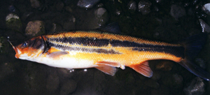 こちらもウグイ。ウロコがマルタより大きく、体側のオレ