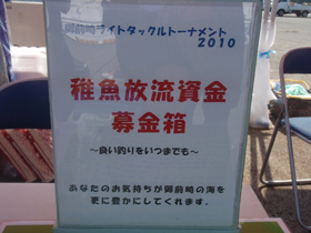大会本部には「稚魚放流募金箱」も置かれ、