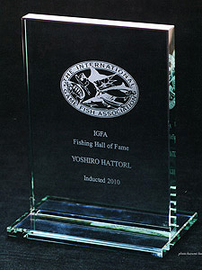 殿堂入りの記念にIGFAから贈られたクリスタル製の盾 |