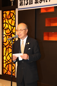 来賓を前にあいさつする岡田順三JGFA会長 |