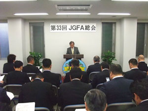 2011ǯ3·î13Æü¤ËͽÄꤵ¤ì¤Æ¤¤¤¿¡ÖÂè33²óJGFAÄêÎãÁí²ñ¡õº©¿Æ¥Ñ¡¼¥Æ¥£¡¼¡×¤Ï¡¢2ÆüÁ°¤Î11Æü(¶â)¤Ëµ¯¤³¤Ã¤¿ÅìÆüËÜÂç¿ÌºÒ¤Î¤¿¤á¤ä¤à¤Ê¤¯±ä´ü¤È¤Ê¤ê¡¢4·î12Æü¤Ë²þ¤á¤Æ³«ºÅ¤µ¤ì¤Þ¤·¤¿¡£ÅöÆü¤Ï18¡§00¤è¤êÆüËÜ¥Õ¥£¥Ã¥·¥ó¥°²ñ´Û6³¬¤Ë¤Æ¡¢µÄ°Æ¿³µÄ¤¬¹Ô¤ï¤ì¡¢Ìò°÷²þÁª°Æ¤ò´Þ¤à¤¹¤Ù¤Æ¤ÎµÄ°Æ¤¬¾µÇ§¤µ¤ì¤Þ¤·¤¿¡£