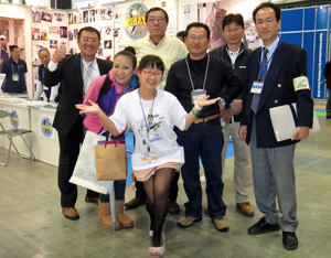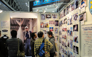 JGFAブースで目をひいたのは昨年から今年に掛けて世界(日本)記録に認定された魚と釣り人たちのパネル。中でも圧巻は120kgのマハタ、71.15kgのカンパチ。全長186cmのマハタと、190cmのカンパチはともに等身大の巨大パネルで迫力満点。マハタの方は昨年(2011年)4月に「Team立釣魂」の吉田幸治さんが、沖縄県与那国島沖で釣った魚で、ブース内のテレビで流すVTRに来場者たちは釘付け状態でした。迫力満点のスタンディング・ファイトを披露する吉田さんのガッツポーズに、うなり声が上がるシーンも…。
