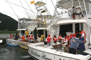 ★7/23には、地元の小学生を対象としたボランティアクルージングを開催、そして夜には地元下田市関係者の皆さんの絶大なご支援を得て盛大な前夜祭が開催されました。また、大会期間中は「道の駅開国下田みなと」周辺で「下田マリンフェスティバル」が同時開催され、地元の皆さん、大会参加者、それに観光客も交え、にぎやかに行われました。下田海上保安部も巡視船の見学、体験クルージングを行うなど、JIBTはまさに夏の下田を代表するイベントに成長しました。