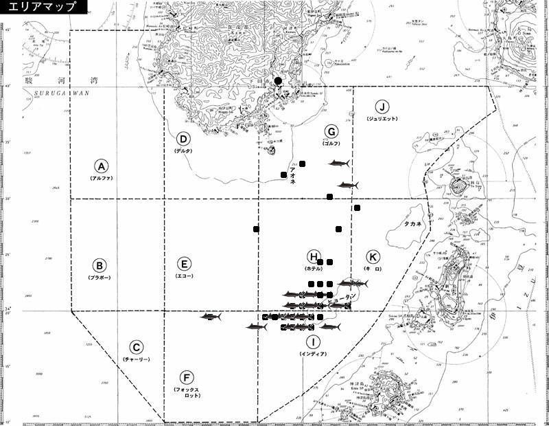★海域内のカジキマークは、キャッチ、またはT&Rされた位置。■マークはバラシた位置です。(以下は3日間合計のデータです。)