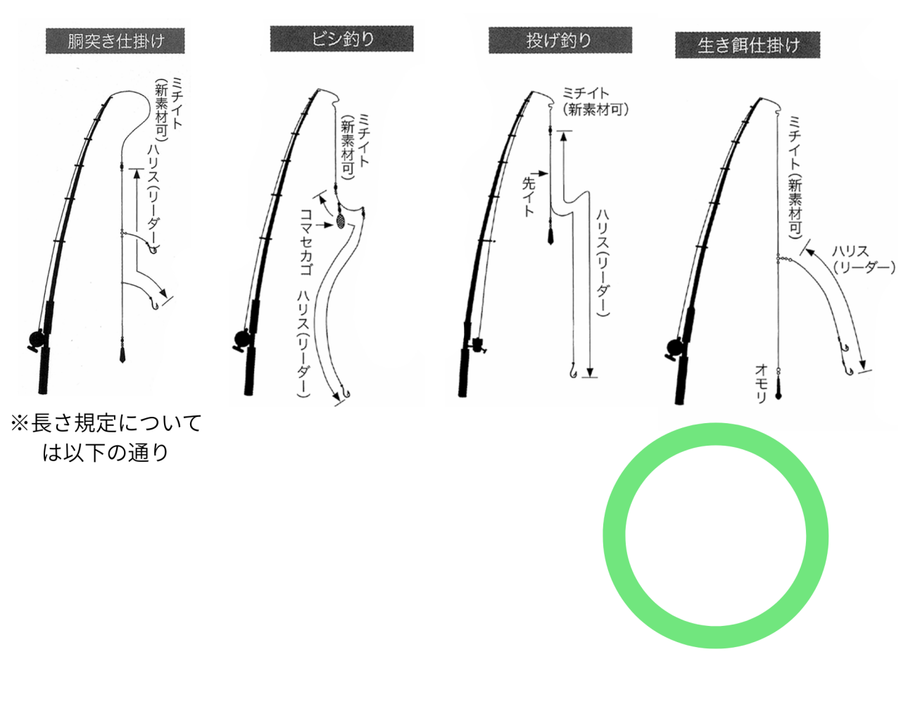 - 魚の引きを不当に吸収してしまう仕掛はいけません。(クッションゴムの禁止)