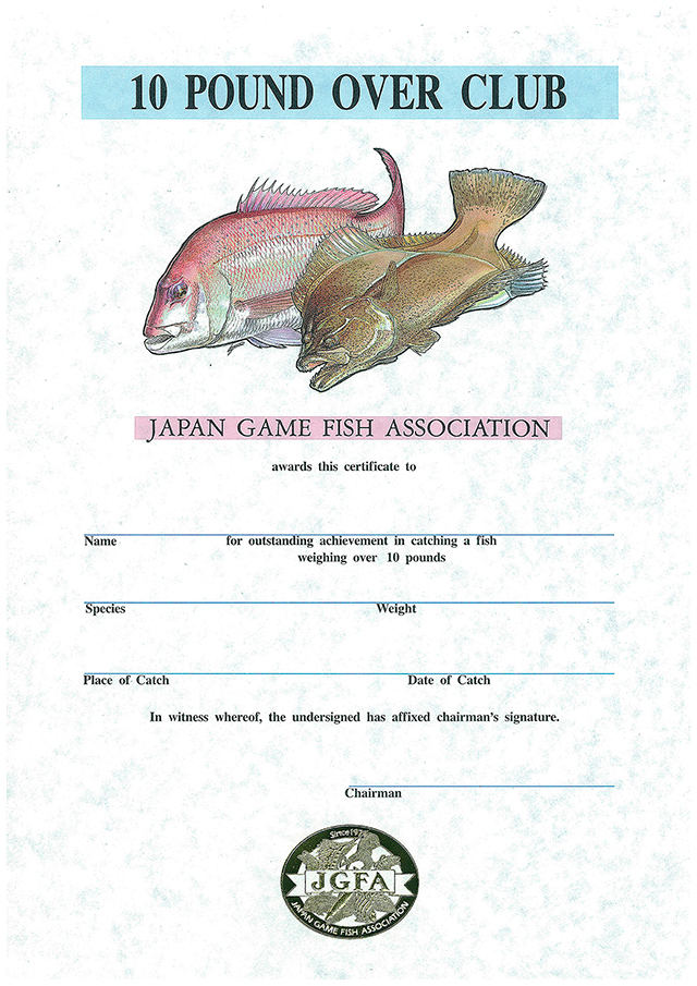 10ポンドオーバークラブ(マダイ、ヒラメ)賞状